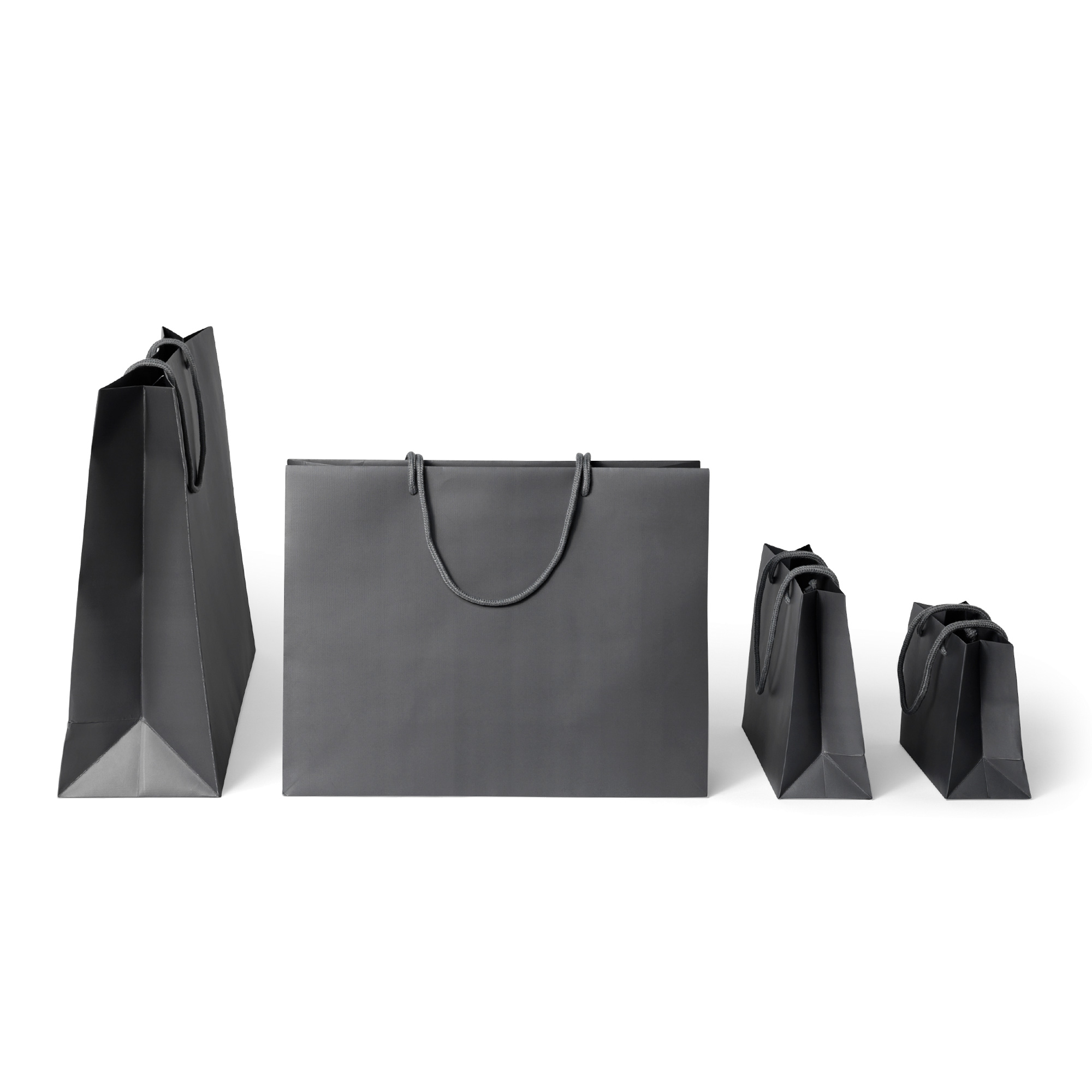 Meticulously crafted, this bag boasts a subtle embossed texture that adds an element of elegance without overshadowing its overall design. The matt grey hue provides a contemporary and adaptable look, making it suitable for numerous occasions and product types. Its robust construction guarantees durability, offering dependable support for your items.